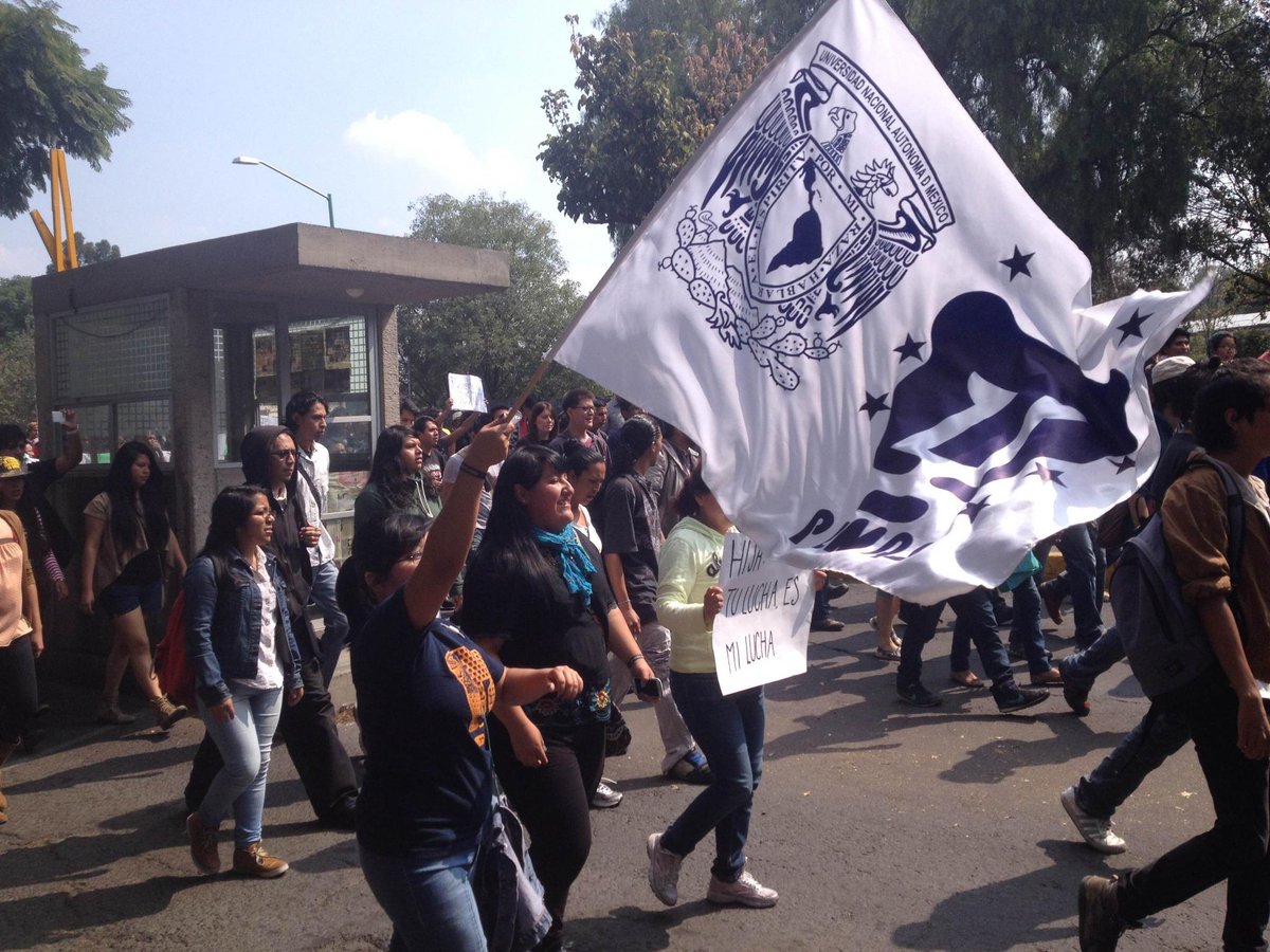 Al grito de «Fuera Narro», los manifestantes se enfilaron sobre Cerro del Agua para acceder al campus universitario, cerca de la Facultad de Medicina.